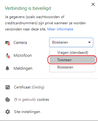 Camera afgewezen in Google Chrome