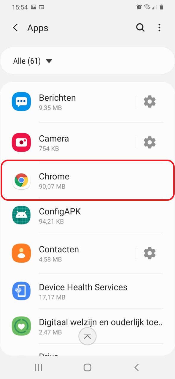 Navigeer naar 'Chrome' of een andere browser waar je gebruik van maakt